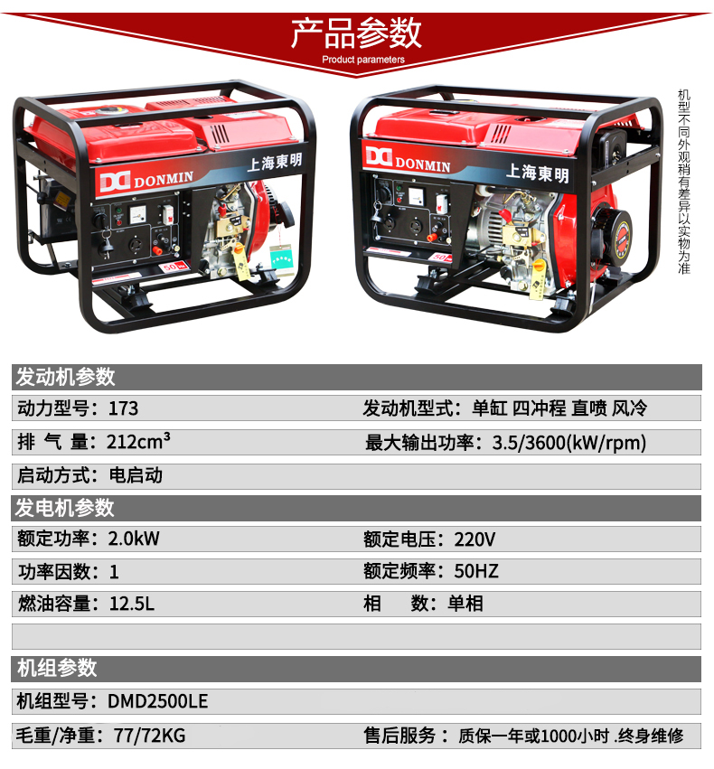 * 表示必填采購:單相2kw柴油發電機DMD2500LE